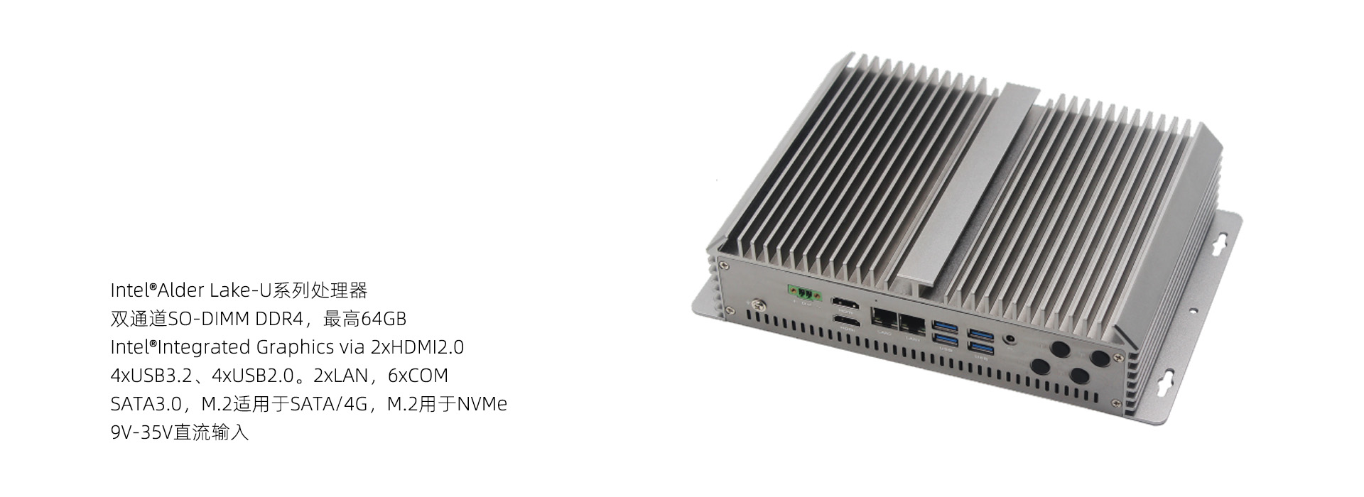 出色的性能:DSAL-35Mini PC搭载最新的Intel® Alder Lake U系列处理器,支持高达64GB的双通道DDR4内存,确保在各种工业应用中都能提供卓越的性能。