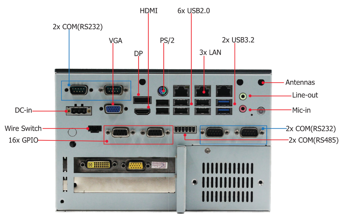 多样显示与接口:支持HDMI、DP和VGA多种显示接口,同时提供丰富的I/O接口,满足您多样化的连接和显示需求。
