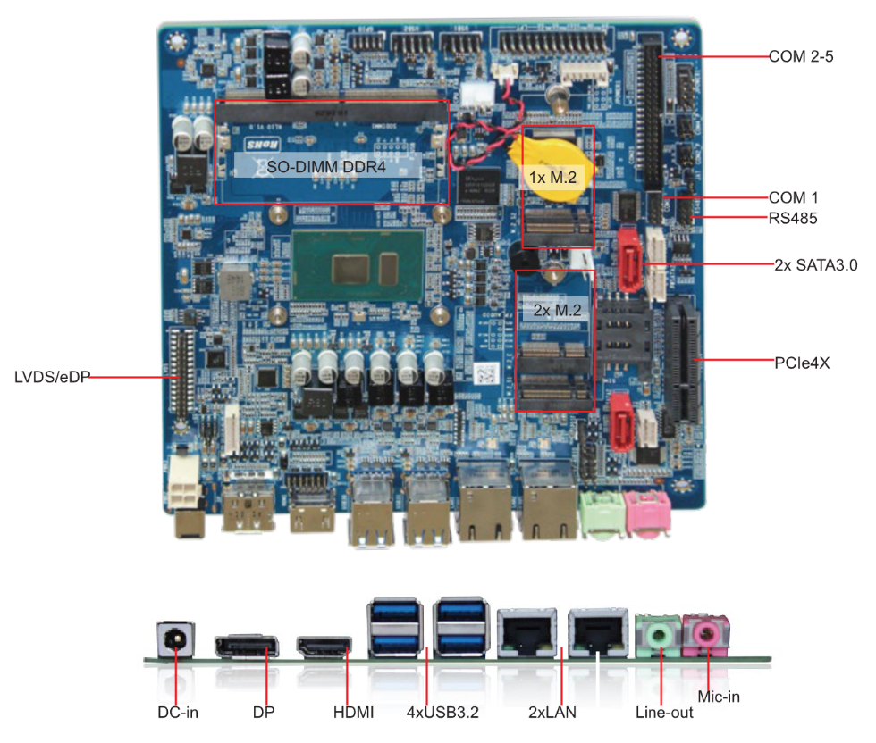 高速存储与扩展:支持SATA3.0和M.2存储接口,提供快速的数据读写速度;同时,PCIe X4和eMMC扩展槽,满足您更多的扩展需求。