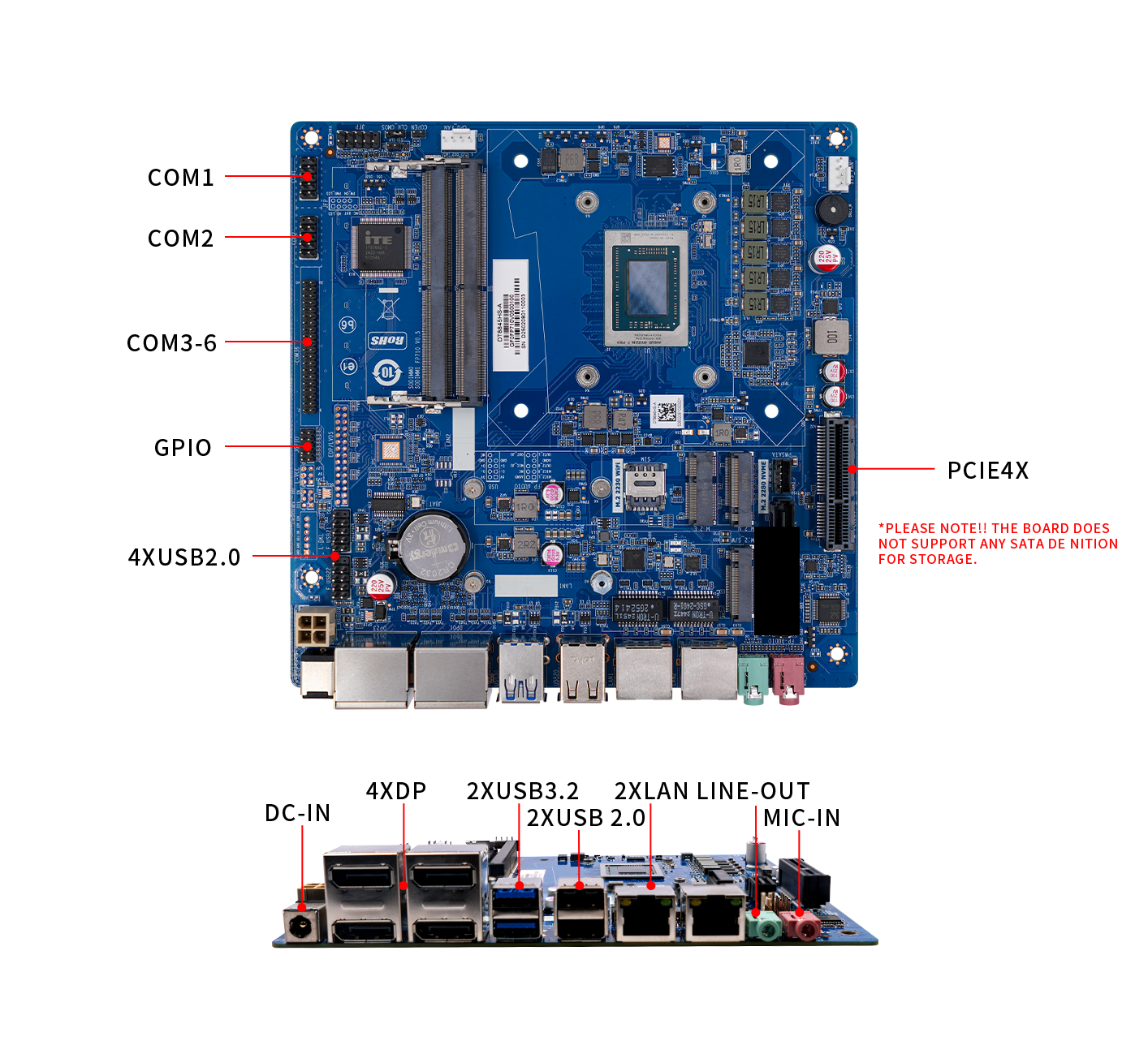 Expansion: PCIe X4, M.2 2230 slot for Wi-Fi, M.2 2242 Slot for 4G, Nano SIM
