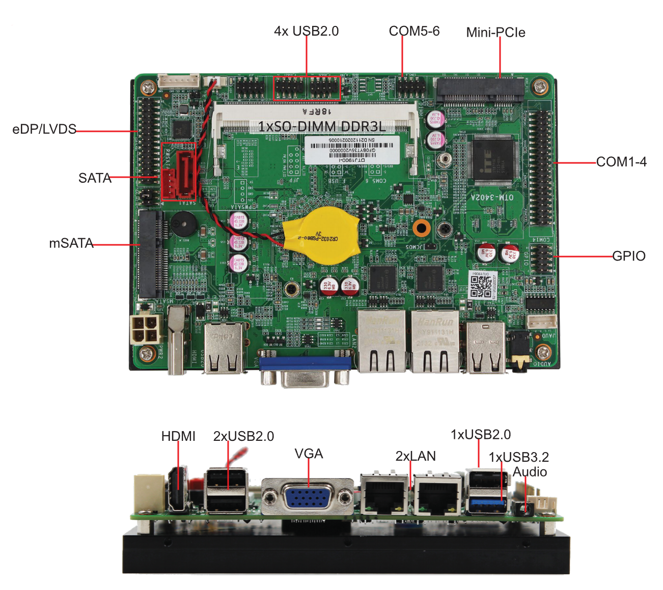 可靠扩展能力:通过mini PCIe插槽支持WiFi模块和Micro SIM卡扩展,为您提供了灵活的功能扩展和升级选项。