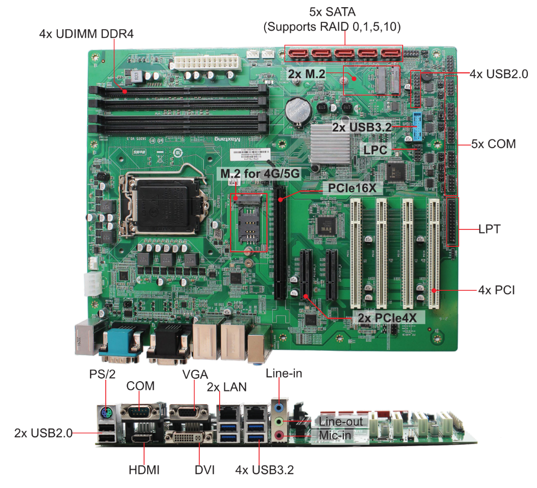 Expansion: M.2, PCIe4X, PCIe 16X, PCI